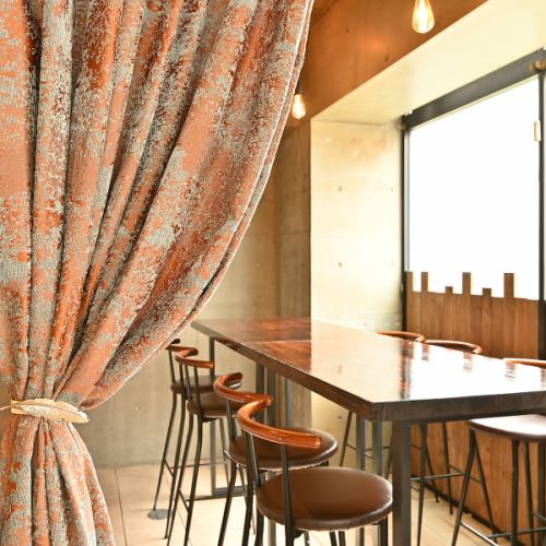 【半個室:8名から利用可能】カーテンで仕切られた半個室。オーダーはカウンター越しに可能なので追加や要望もスムーズにお受けできます!完全個室ではありませんが、特別感のあるお洒落な空間、8名からのご予約でお受けしておりますが、ご利用希望の方は直接店舗までご相談ください。