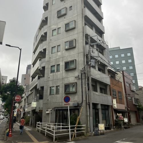 T字路の角に位置したコンクリート打ちっぱなしのビルの1Fになります。