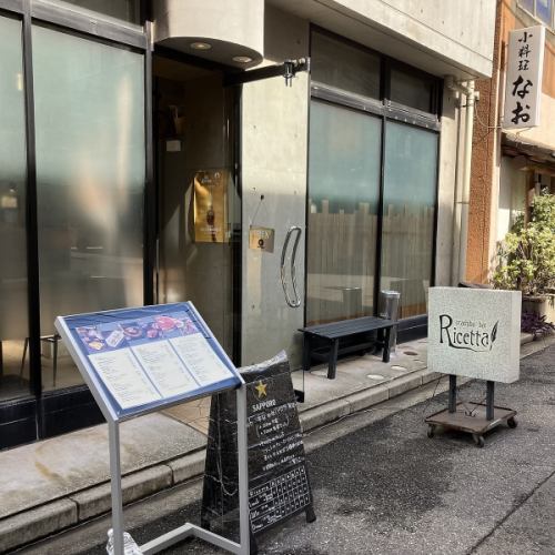 店舗の入り口はメイン通りか曲がってすぐ。白い立て看板が目印です。